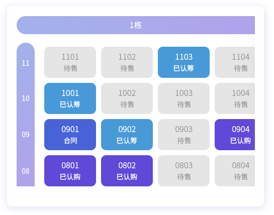 通过电子房源,实时展示房源销售阶段,销售情况,同时可一键查询房源信息,系统化对房源进行管理。